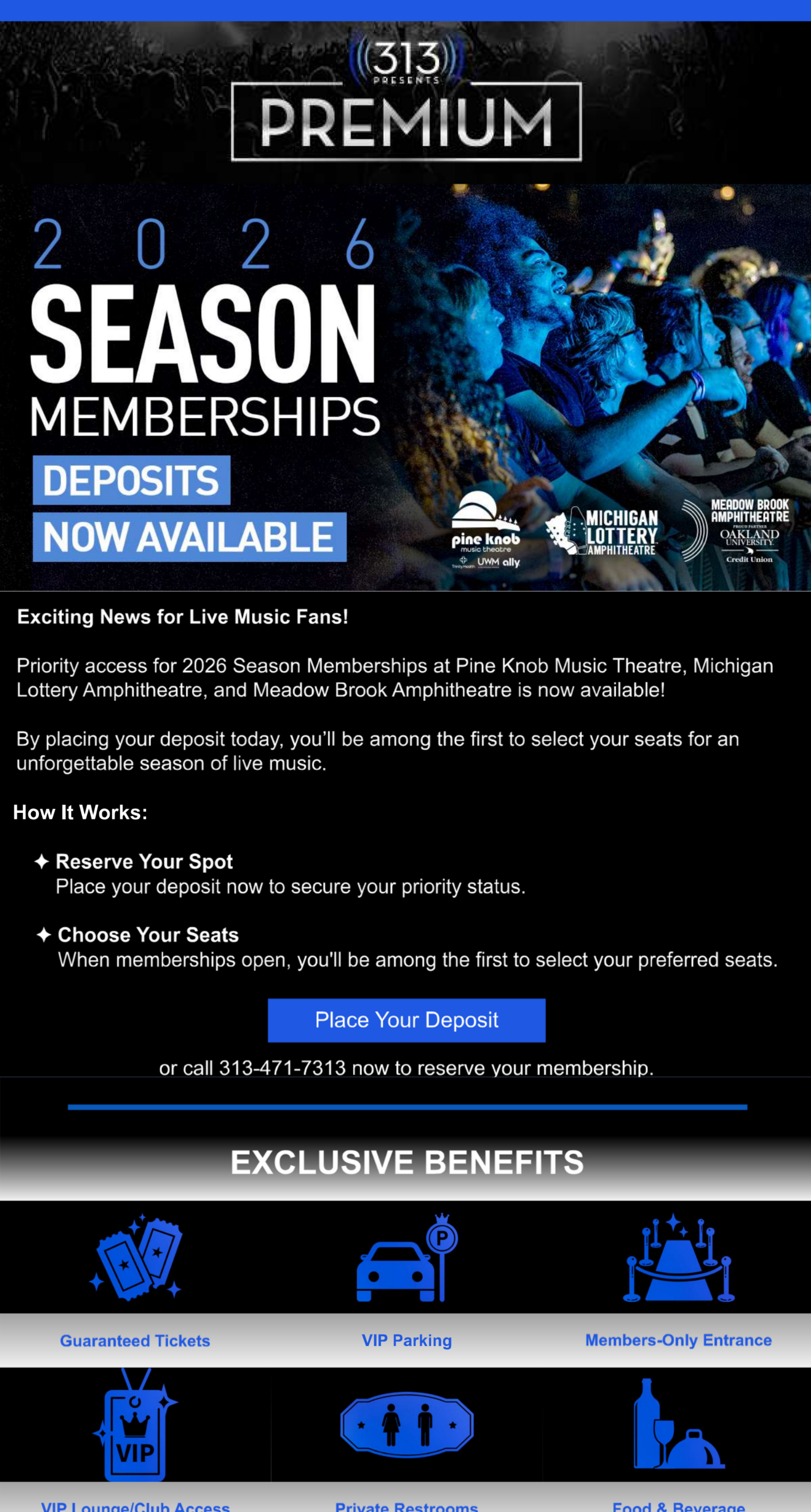 Focused on converting already committed ticket buyers by highlighting the elevated VIP experience and long-term value of season memberships. Positioned both as premium, high-value offerings through all-inclusive benefits, exclusive space, and added convenience. Leveraged targeted segmentation and limited availability messaging to create urgency and drive conversion.